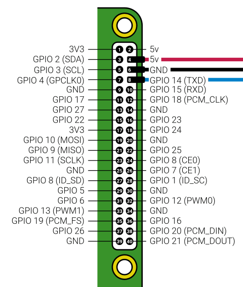 Bij de Raspberry Pi 4 wordt de ventilator op de GPIO pinnen aangesloten. Rood op 5V, zwart op GND en blauw op GPIO 14.